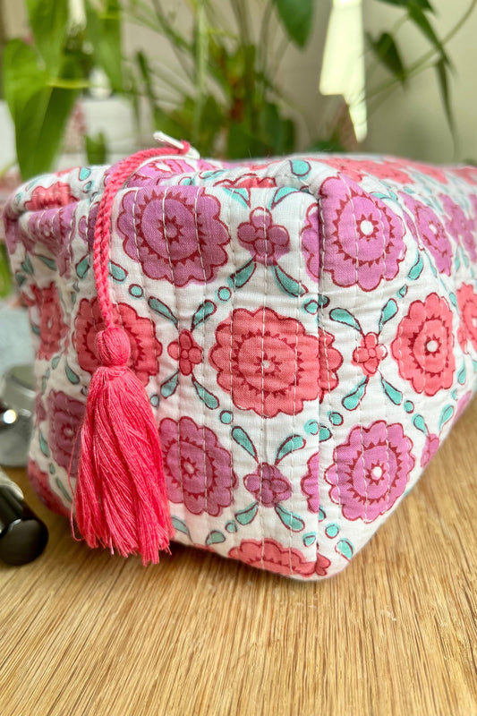 Our quilted washbags combine everyday practicality with artisan design. Hand block printed...