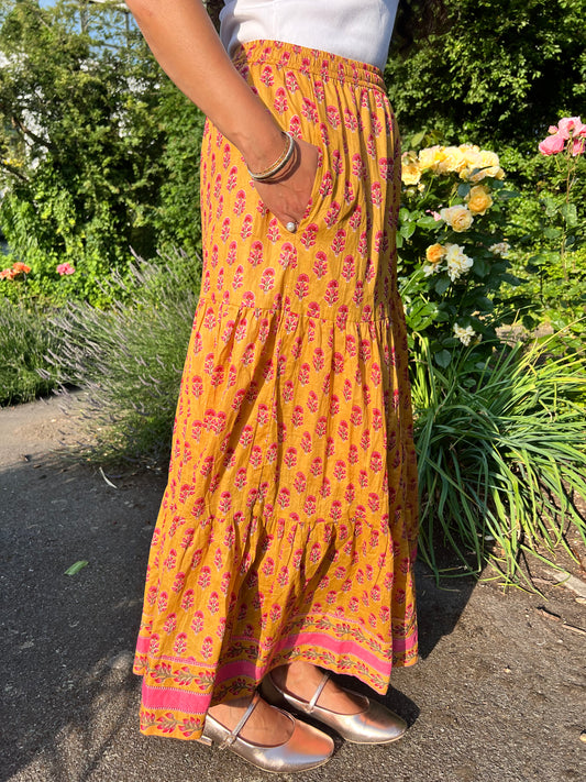 LARA COTTON MAXI SKIRT IN MARIGOLD BLOOM
