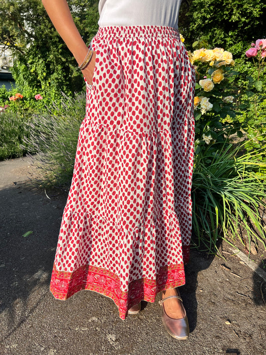 LARA COTTON MAXI SKIRT IN RED PETALS