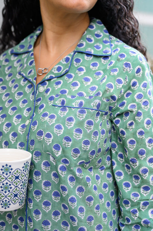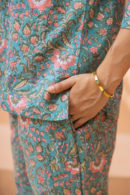 TURQUOISE & CORAL FLORAL LONG PJ SET