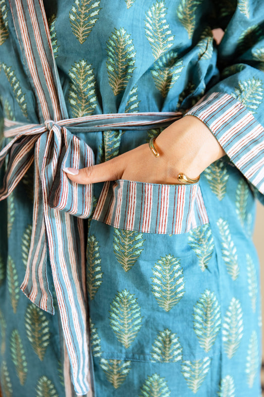 LIGHT COTTON ROBE - AQUA ROSE