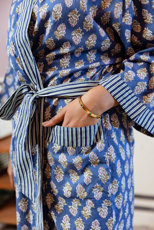 LIGHT COTTON ROBE - MIDNIGHT BLUE FLORAL