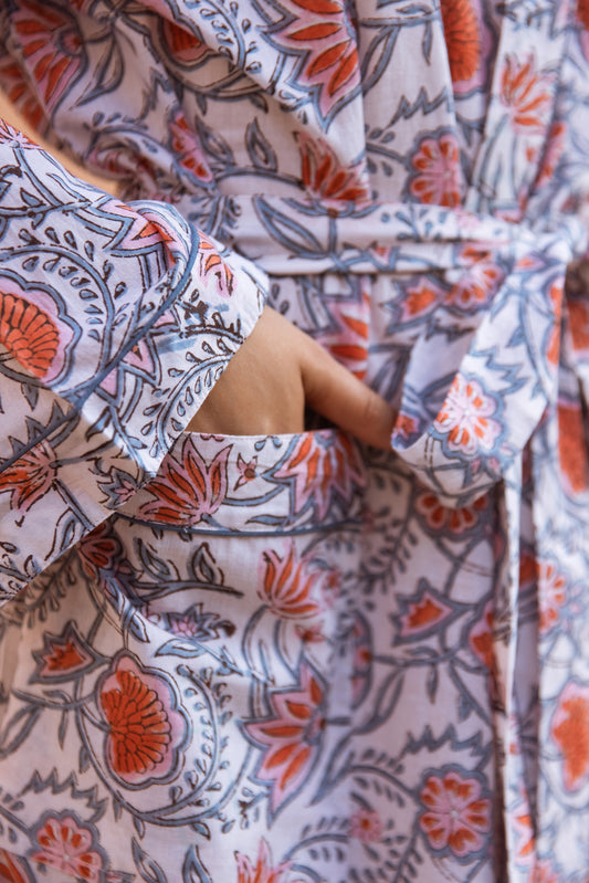 LIGHT COTTON ROBE - CORAL LOTUS