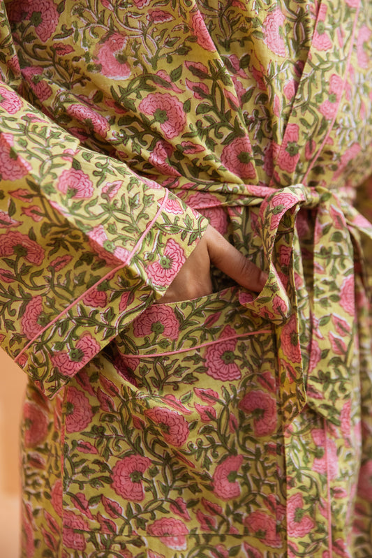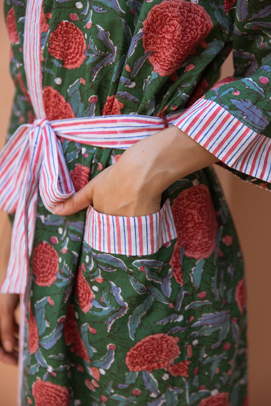 LIGHT COTTON ROBE - GREEN FLORAL BLOOM