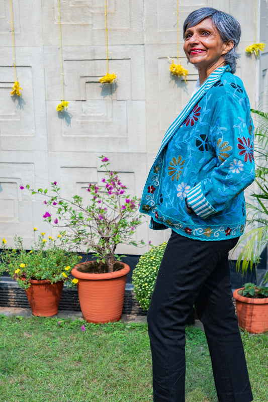 VELVET SUZANI JACKET - TURQUOISE & BURGUNDY FLORAL