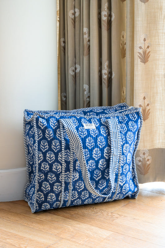 INDIGO BLOSSOM FLORAL QUILTED TOTE BAG