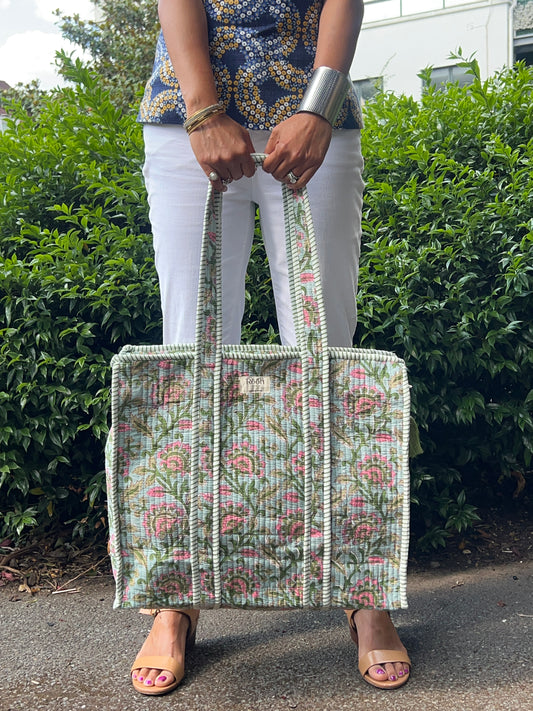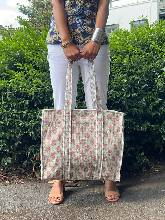 Sold outROSE BLOOM QUILTED TOTE BAG