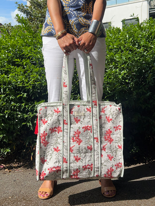CRIMSON BLOOM QUILTED TOTE BAG