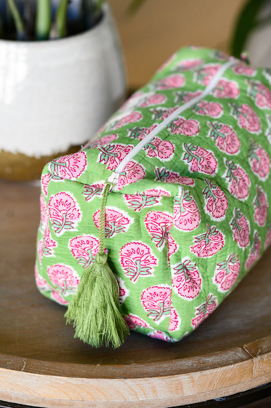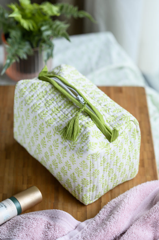 QUILTED COTTON WASH BAG - GREEN BLOSSOM