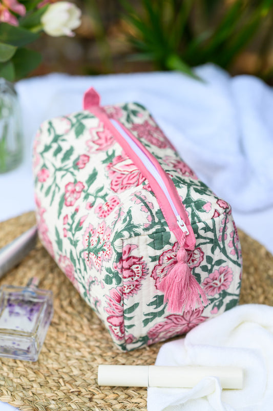 QUILTED COTTON WASH BAG - RANI PINK BLOOM