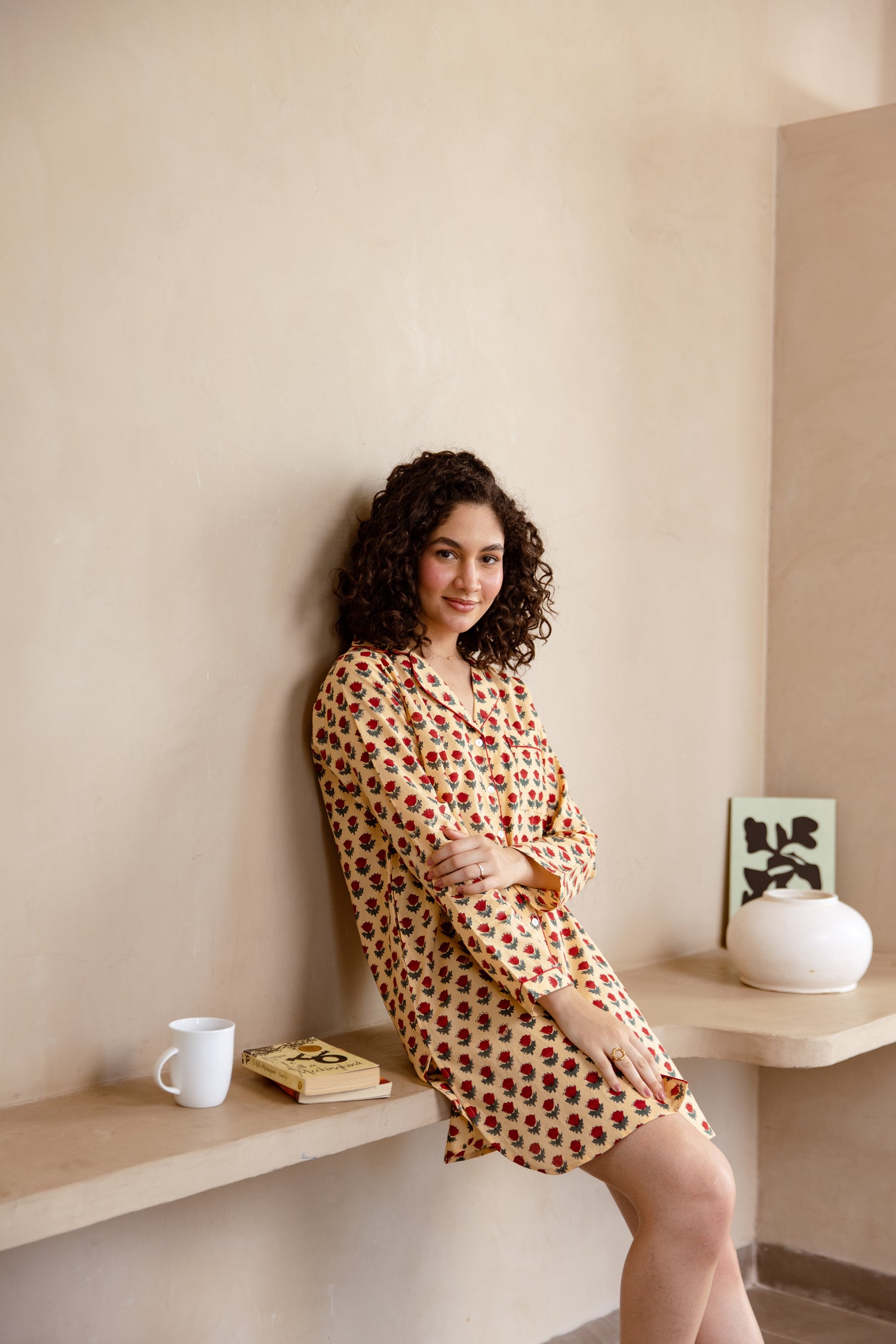 Our block print cotton nightwear brings together feminine nighties and relaxed boyfriend...