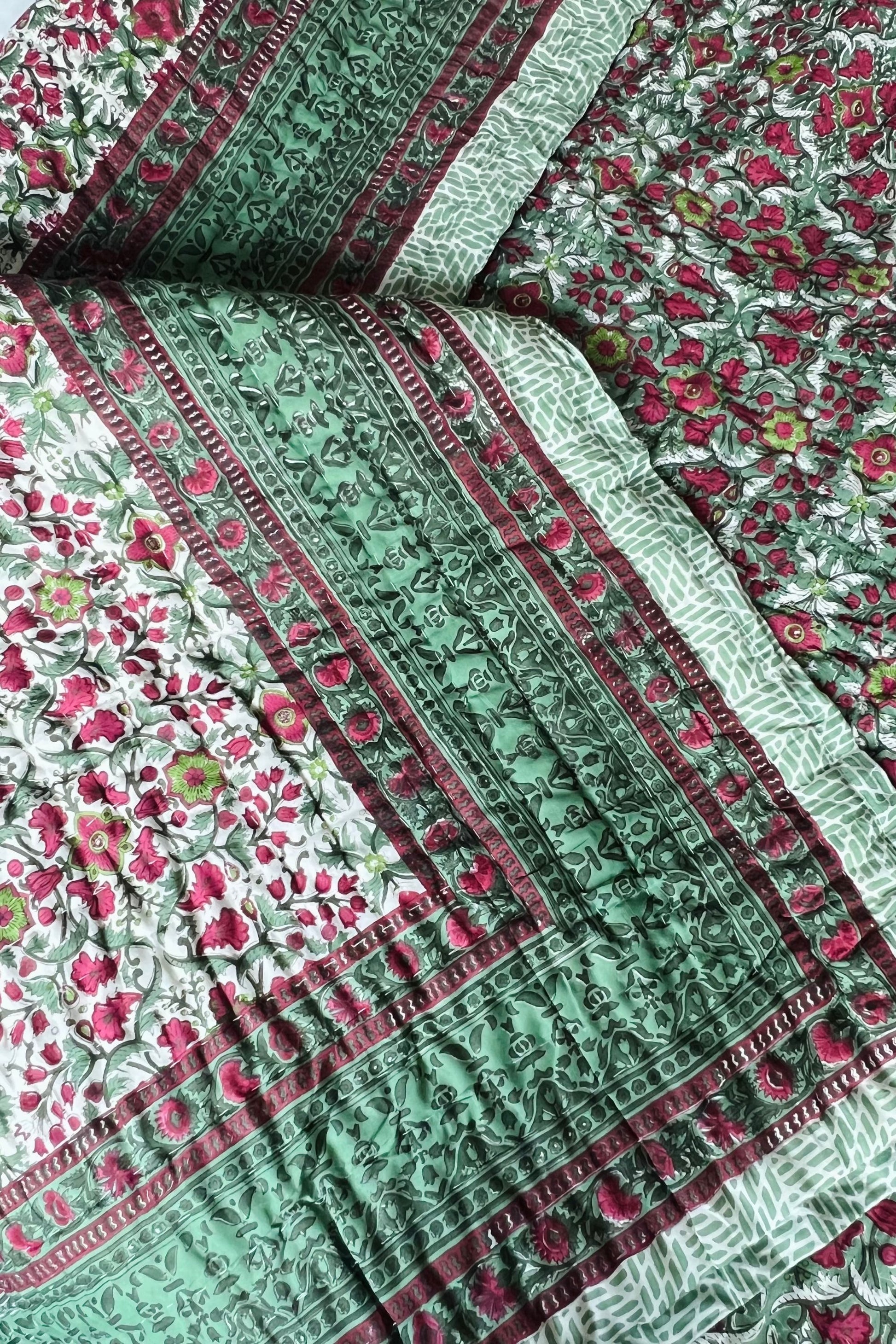 CRIMSON FLORAL VINE BLOCK PRINT COTTON QUILT