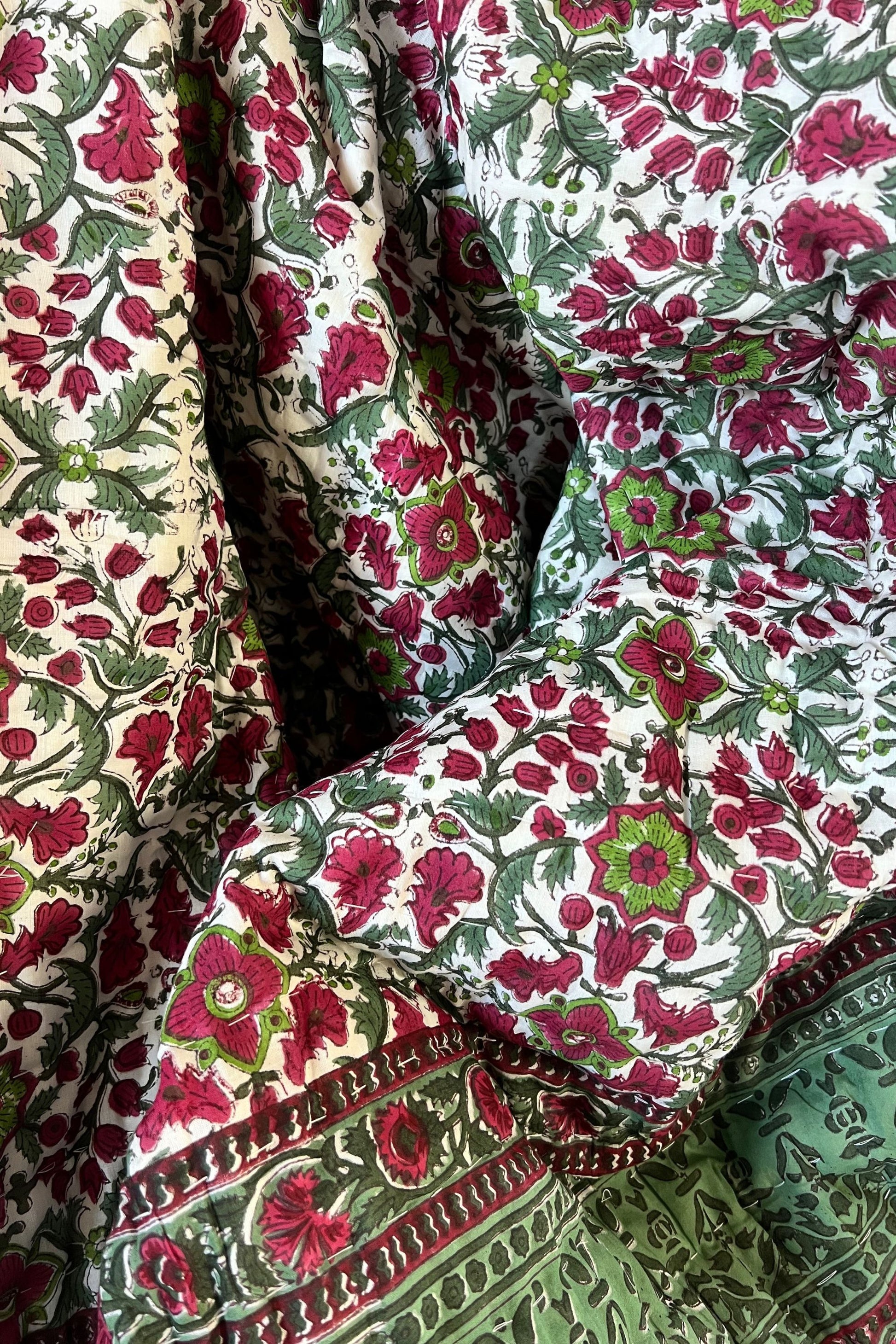 Bring warmth and colour to your bedroom with our hand block printed Crimson Floral Vine Quilt. Made from the softest Indian cotton and filled with natural cotton wadding, it’s incredibly soft, light, and perfect for year-round use - an ideal light cover in summer and a cosy extra layer in winter.