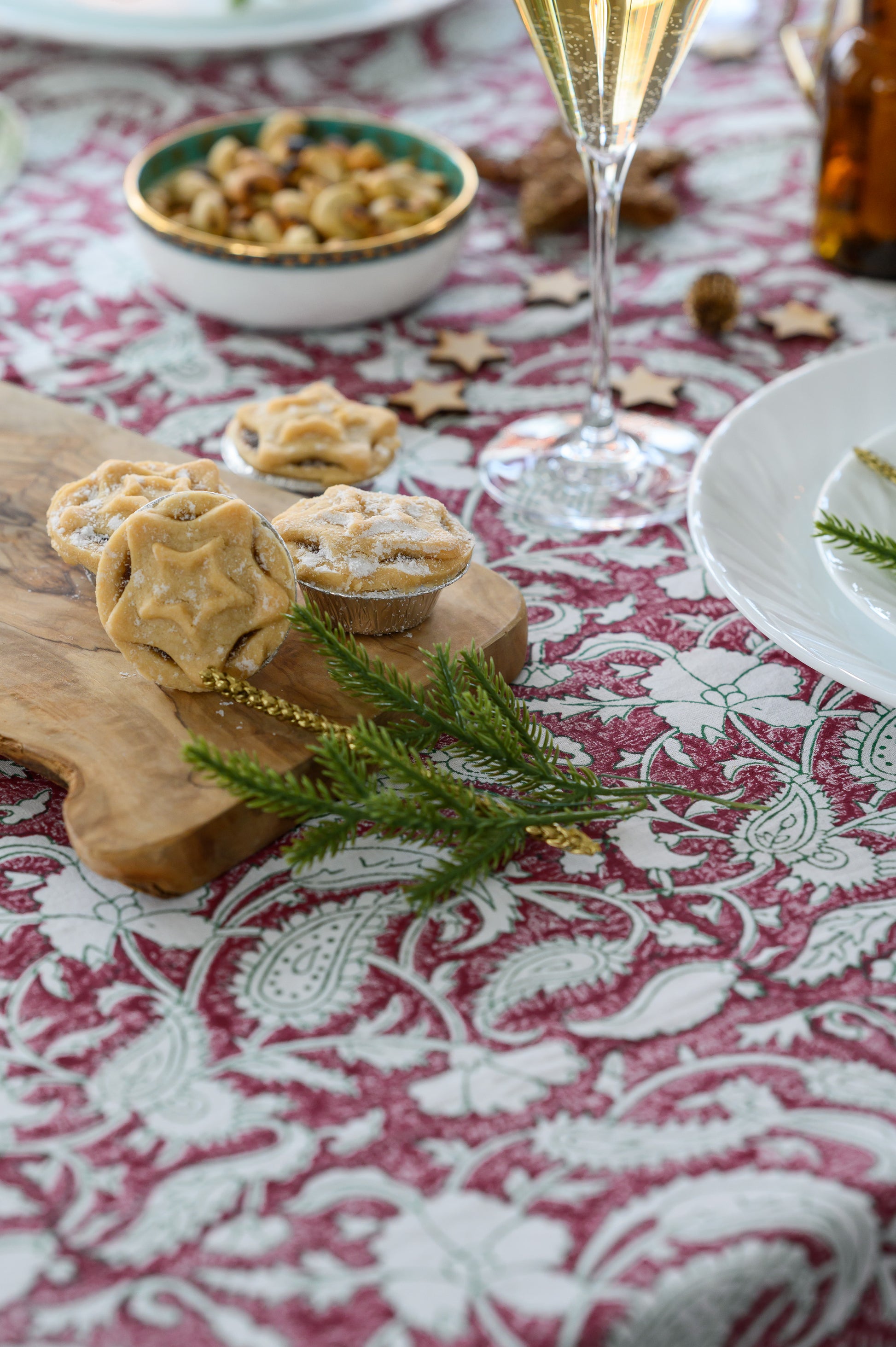 The Rose Paisley Tablecloth is a beautiful blend of heritage and charm, featuring an intricate paisley design in deep rose and sage green. Hand-block printed on soft cotton, this timeless piece brings warmth and elegance to your dining table. Whether for everyday meals or special gatherings, its rich patterns and delicate detailing add a touch of sophistication to any setting.