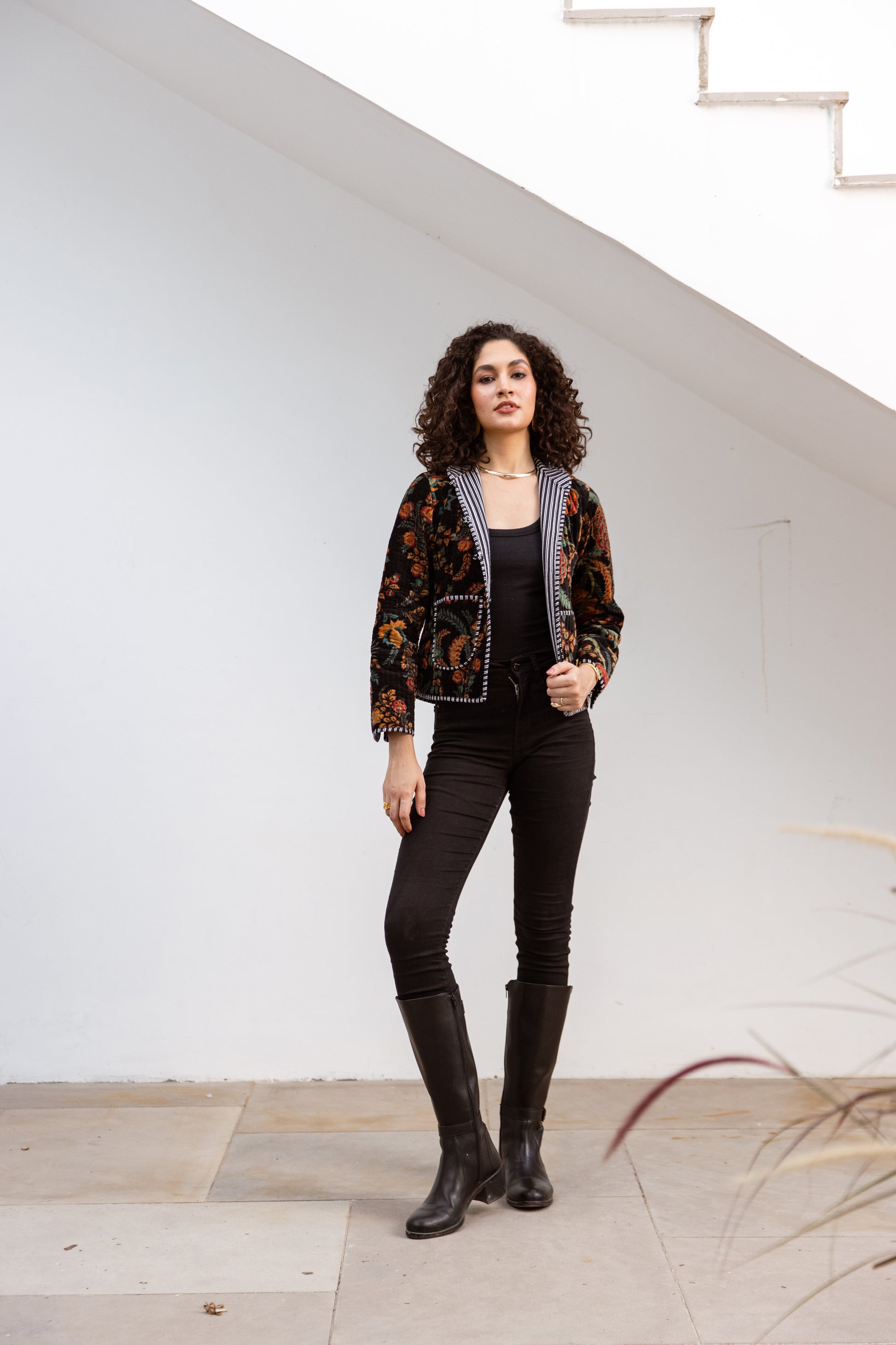 VELVET JACKET - BLACK FLORAL